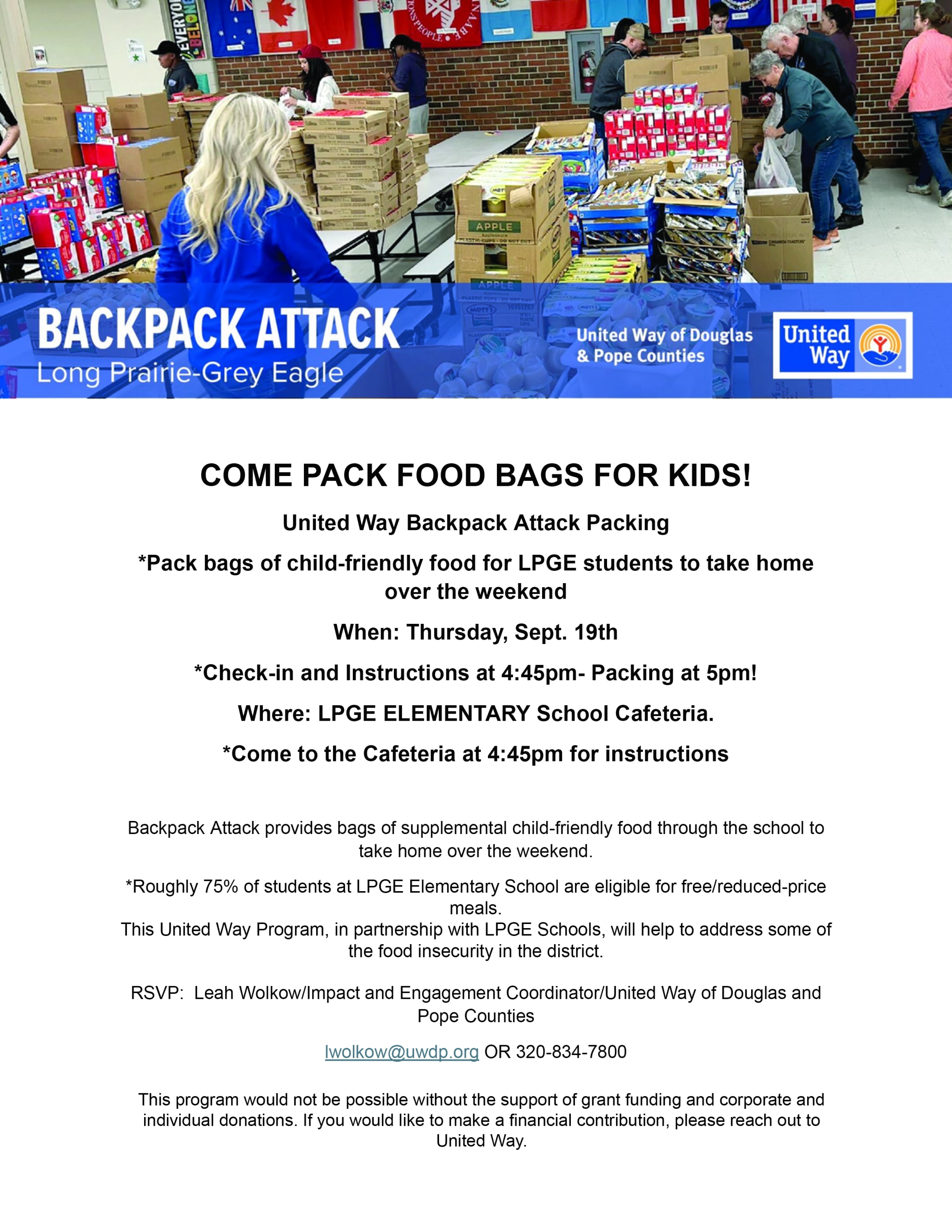 Backpack Attack provides bags of supplemental child-friendly food through the school to take home over the weekend.Images