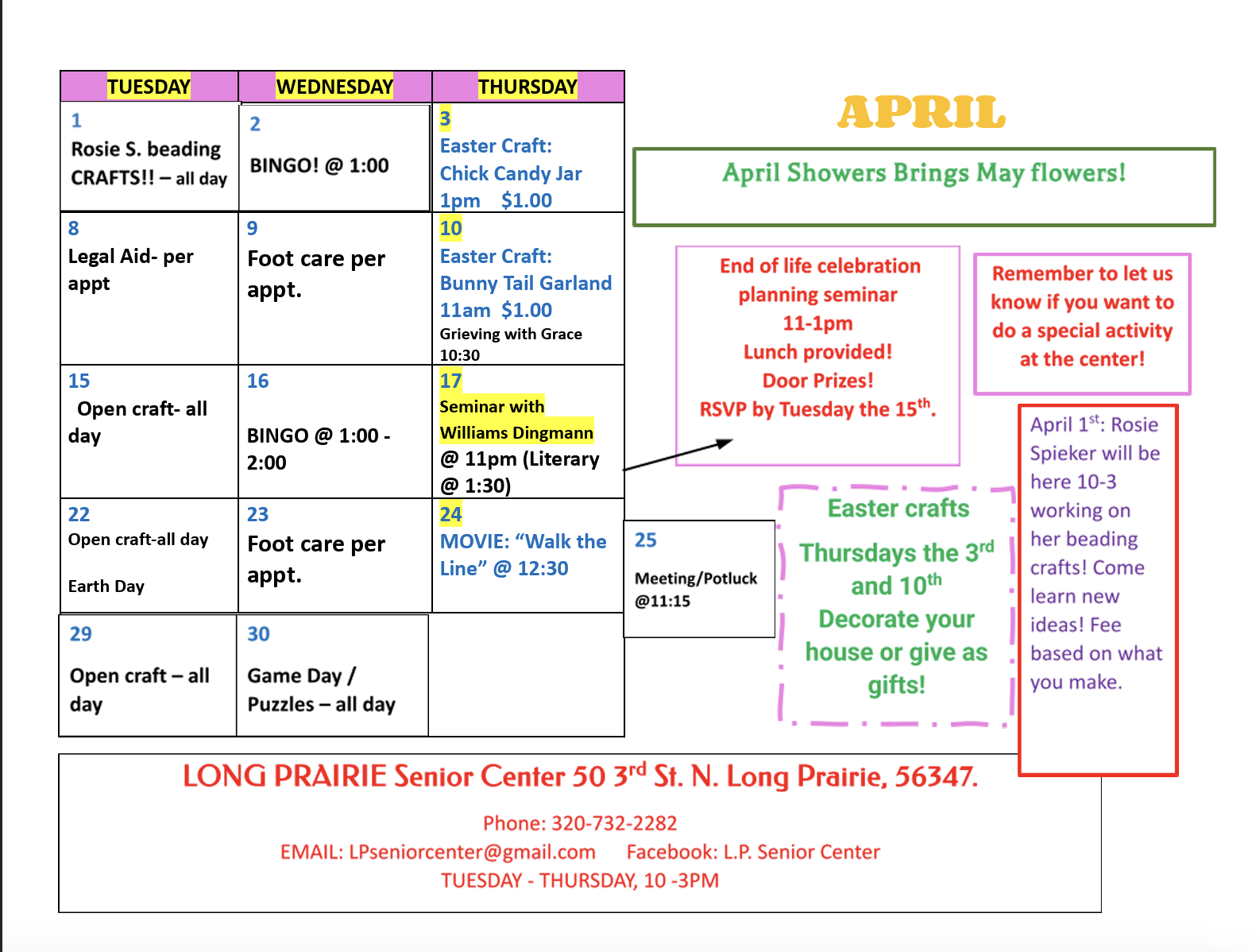 Senior Center April Events