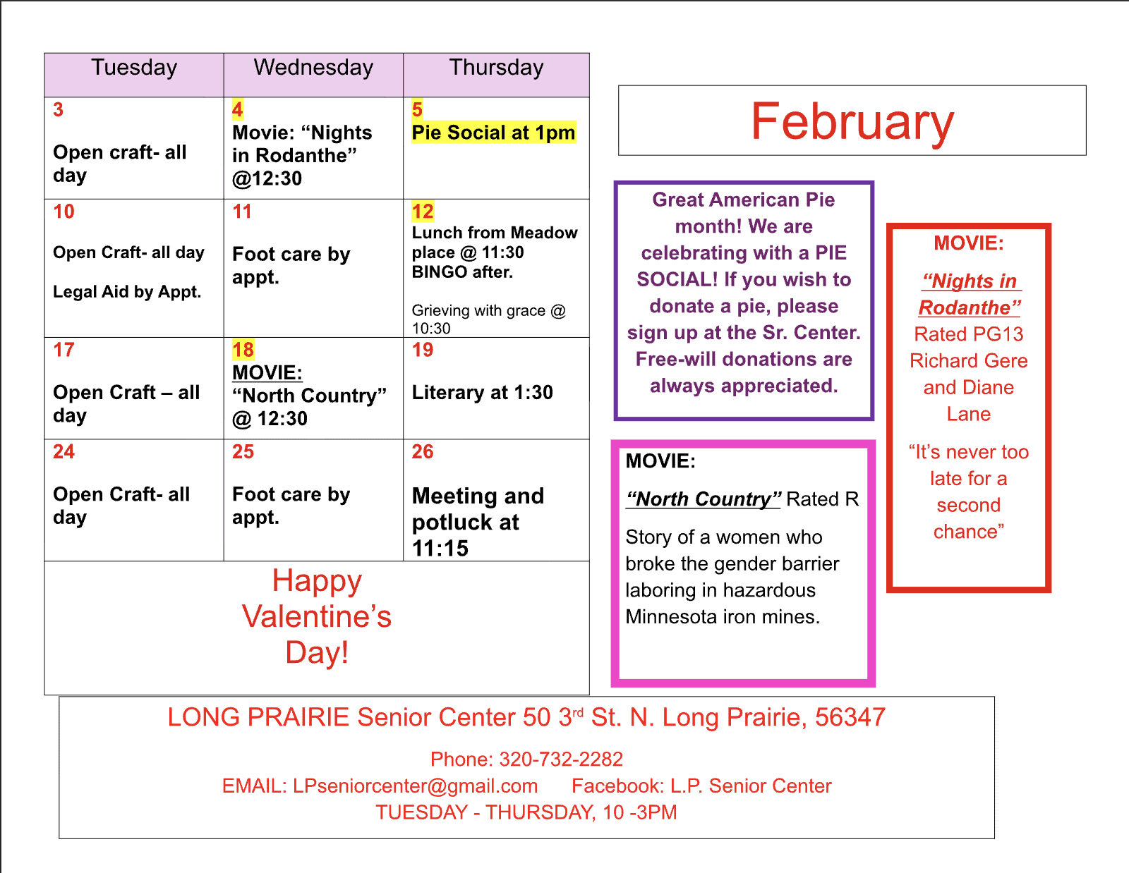 Senior Center Feburary Events