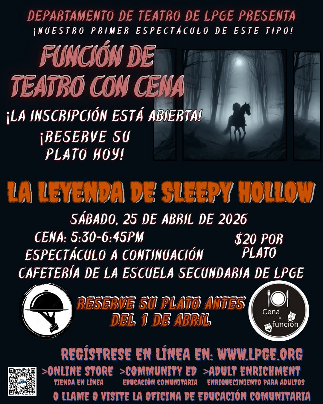 Join us for a special evening of Dinner and a Show as our talented student cast presents The Legend of Sleepy Hollow!